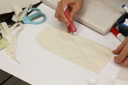 アップリケのように大きなトートバッグに貼り付けていきます。